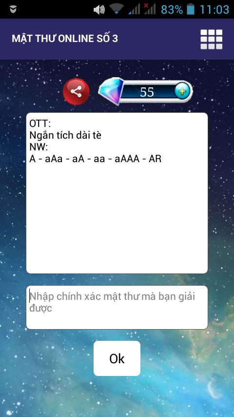 Tiếp Nw ta thấy chỉ có 2 kí tự nên chắc chắn nó được thay thế bằng - và • mọi người thử A = • và a =-