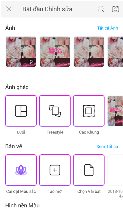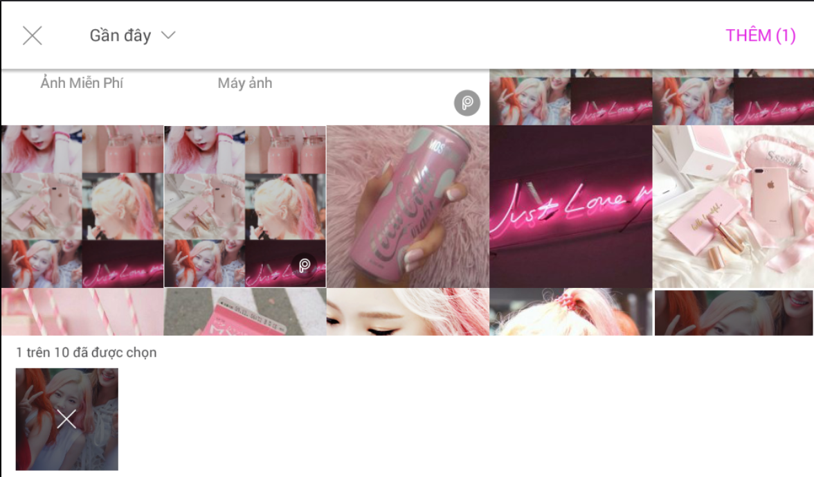 ▶ B8: Lúc này PA sẽ hiển thị toàn bộ ảnh trong bộ sưu tập/thư viện của các cậu, chúng ta chỉ cần chọn ảnh muốn design là ok nè ~