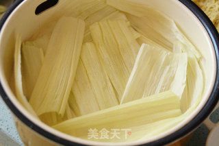 15- Vỏ bắp rửa sạch, cắt bỏ những phần hỏng, trụng qua nước sôi cho mềm rồi lót dưới đáy nồi hấp.
