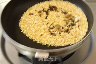 6- Xào đến khi hạt gạo chuyển vàng, có cảm giác hơi nứt ra.
