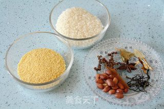1- Chuẩn bị gạo, hạt kê vàng và các loại gia vị khác.