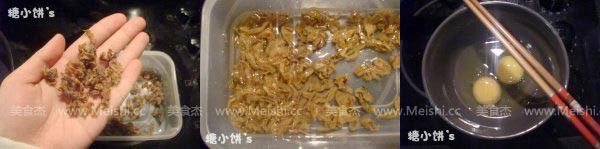 1- Bào ngư khô ngâm nước, rửa sạch để sang một bên cho ráo nước. Đánh trứng, nêm muối.
