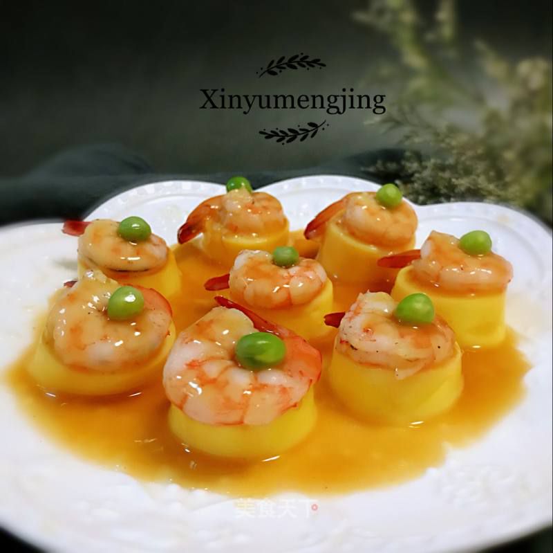 7- Sau khi nước sốt sệt lại, rưới lên tôm đậu hủ, bày ra đĩa, trang trí với đậu hà lan đã chần.