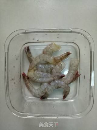 2- Ướp tôm với nửa muỗng muối, rượu nấu ăn, hành lá, gừng, tiêu, bột bắp, trộn đều, để 15 phút.