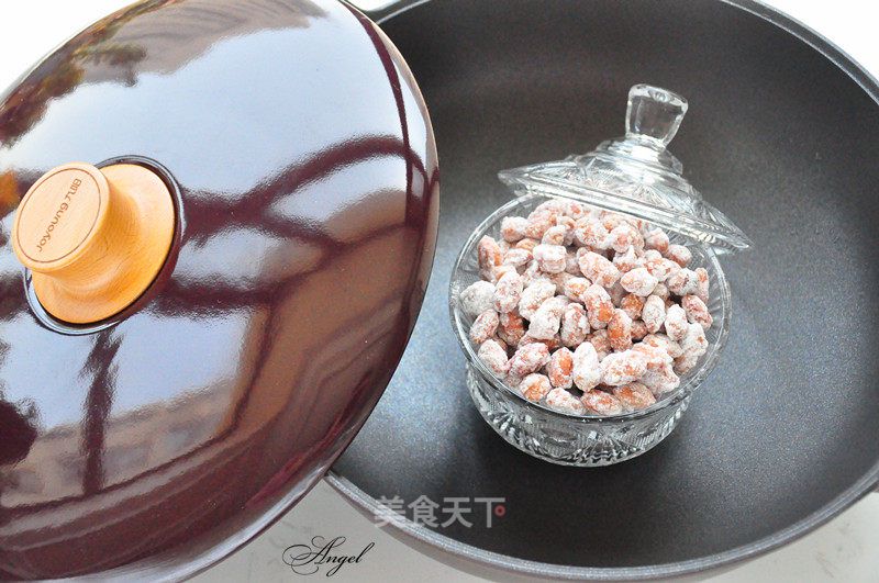 5- Cho đậu phộng vào, đảo nhanh tay để đậu phủ đều nước đường.