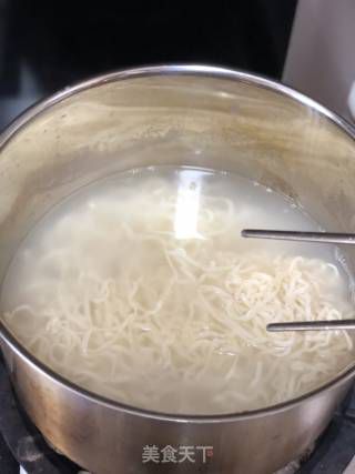 10- Bắc nồi đun nước, thêm ít muối, trụng mì, sau đó vớt ra cho vào tô đựng nước hầm xương.