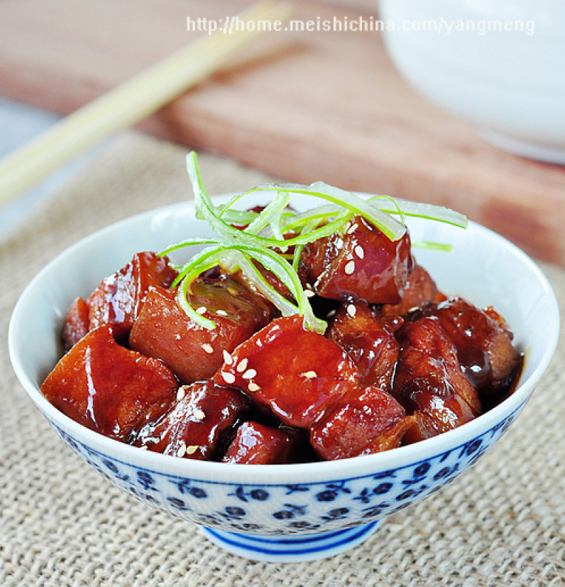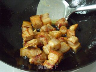 1- Cắt thịt lợn thành miếng như mạt chược, rửa sạch, ngâm trong rượu nấu ăn 1 giờ, vớt ra để ráo.