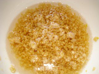 4- Băm tỏi. Cho dầu vào chảo, thêm tỏi vào xào trên lửa nhỏ với một chút muối, tới khi vàng là được.