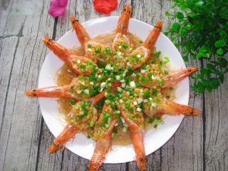 7- Rửa hành, thái nhỏ, rắc lên đĩa tôm hấp miến sau khi chín.