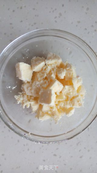 7- Làm mềm kem phô mai, cắt thành từng miếng nhỏ.