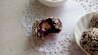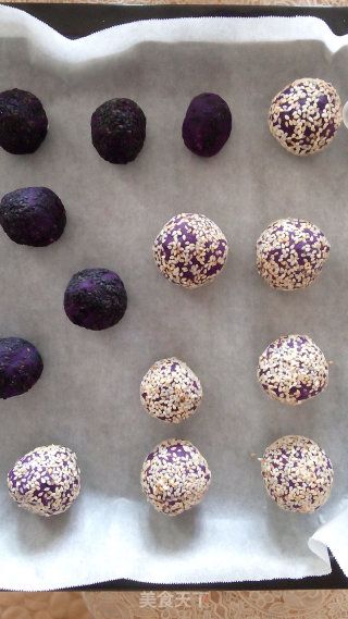 9-Lăn viên khoai tím qua mè trắng đã chín.