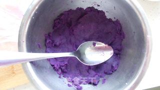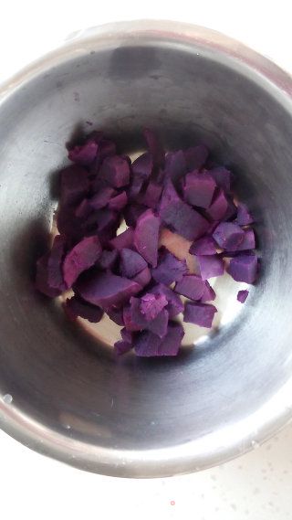 1- Rửa rồi hấp khoai lang tím (tới khi có thể dùng đũa xuyên qua khoai).