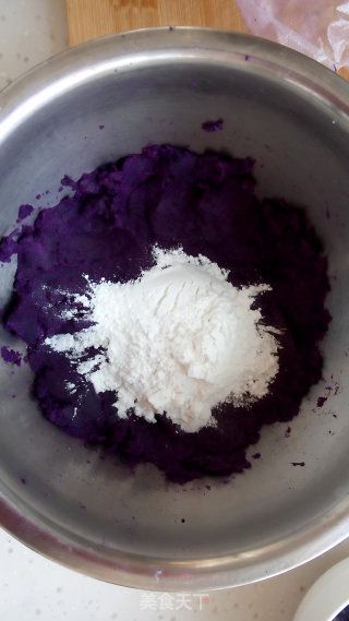 8- Bọc nhân phô mai vào bột khoai tím (nên làm trực tiếp bằng tay để dễ cảm nhận độ khô, ướt của bột).