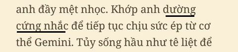 - Khớp anh dường cứng nhắc để tiếp tục chịu sức ép từ cơ thể Gemini.