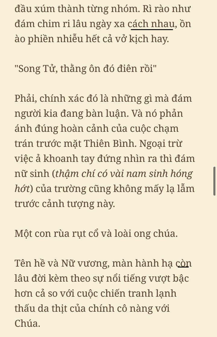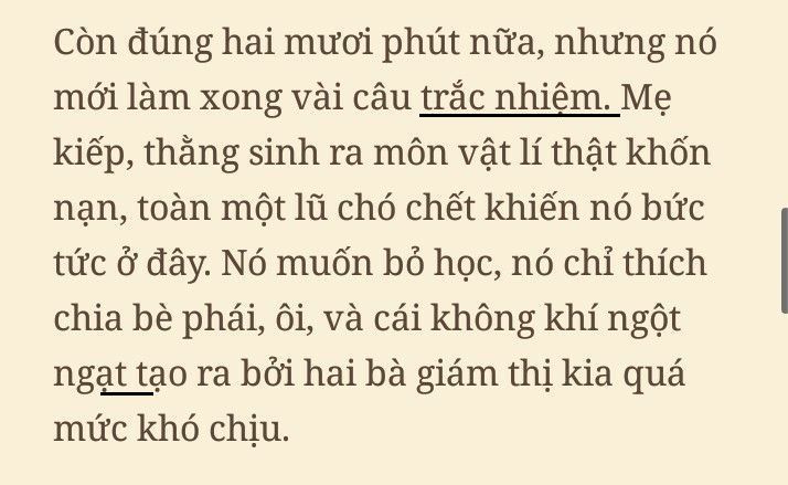 - ..., và cái không khí ngột ngạt tạo ra bởi hai bà giám thị kia quá mức khó chịu.