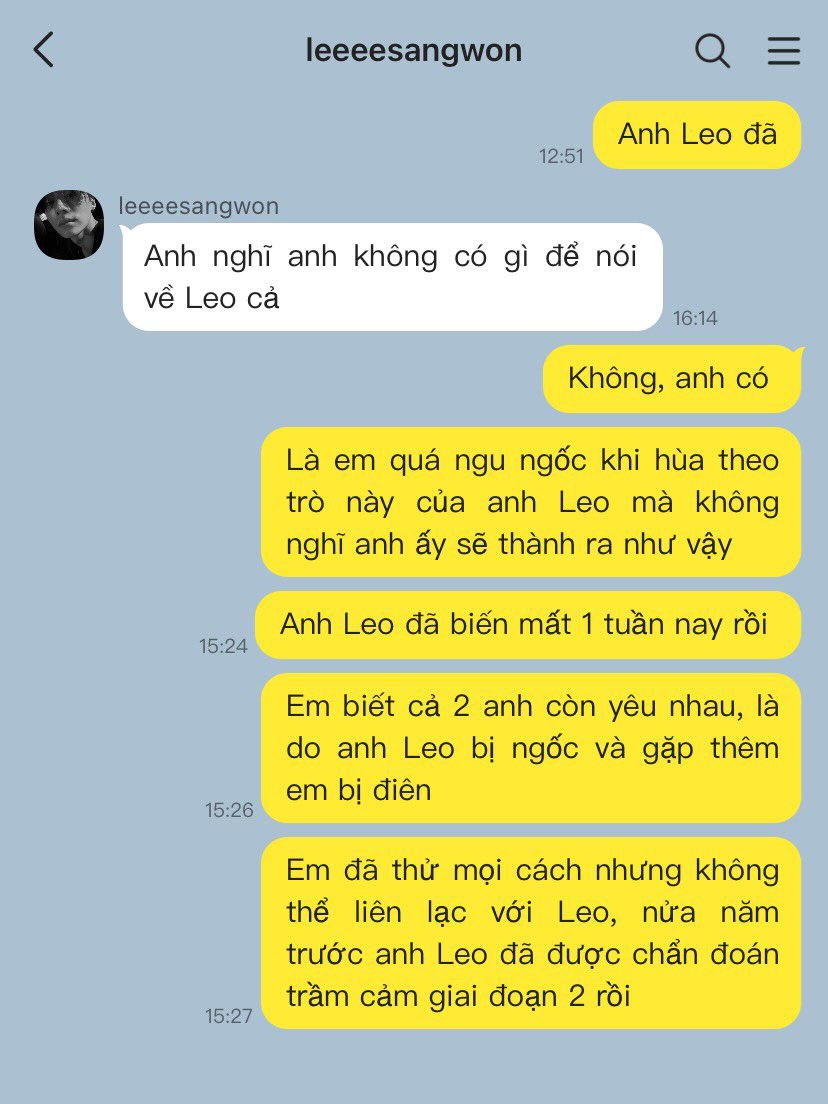 'Nửa năm trước, anh Leo đã được chẩn đoán trầm cảm giai đoạn 2 rồi.'