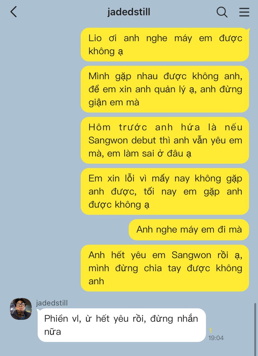 'Anh hết yêu em Sangwon rồi ạ, mình đừng chia tay được không anh?'