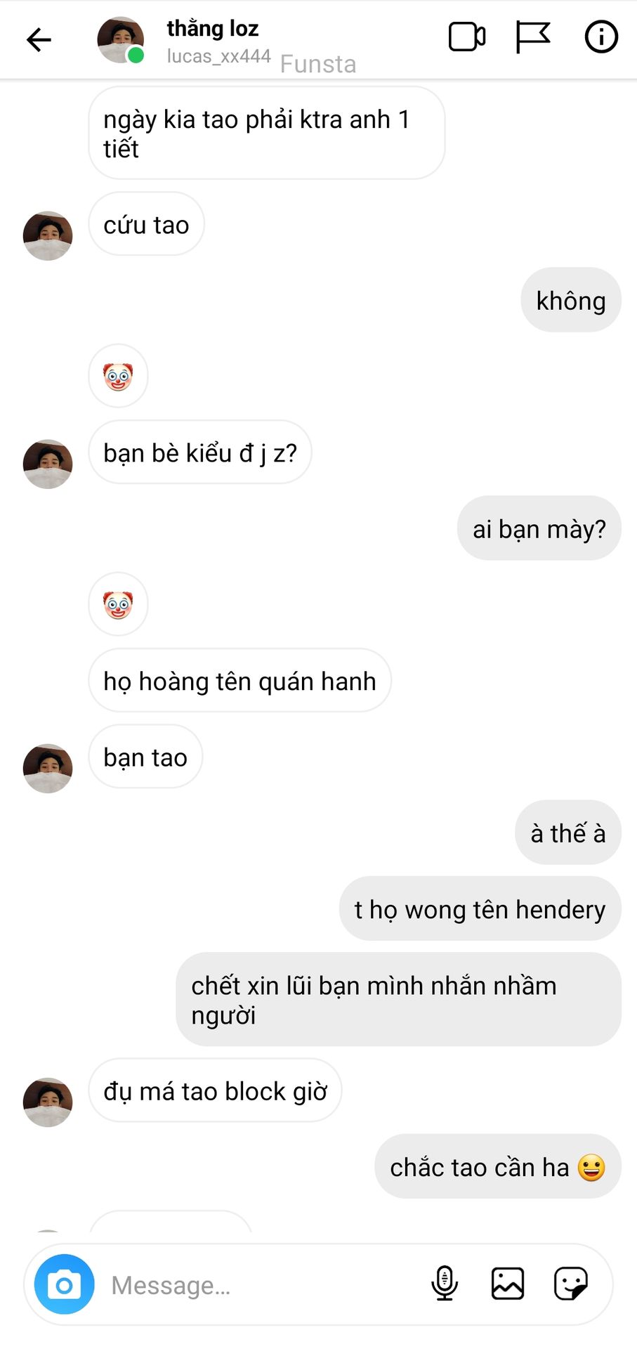 "khổ quá em còn không biết người ta là ai, còn chưa chắc là trong trường, em thấy ghét, em block thôi" - xiaojun cầm điện thoại lên lắc lắc phản bác
