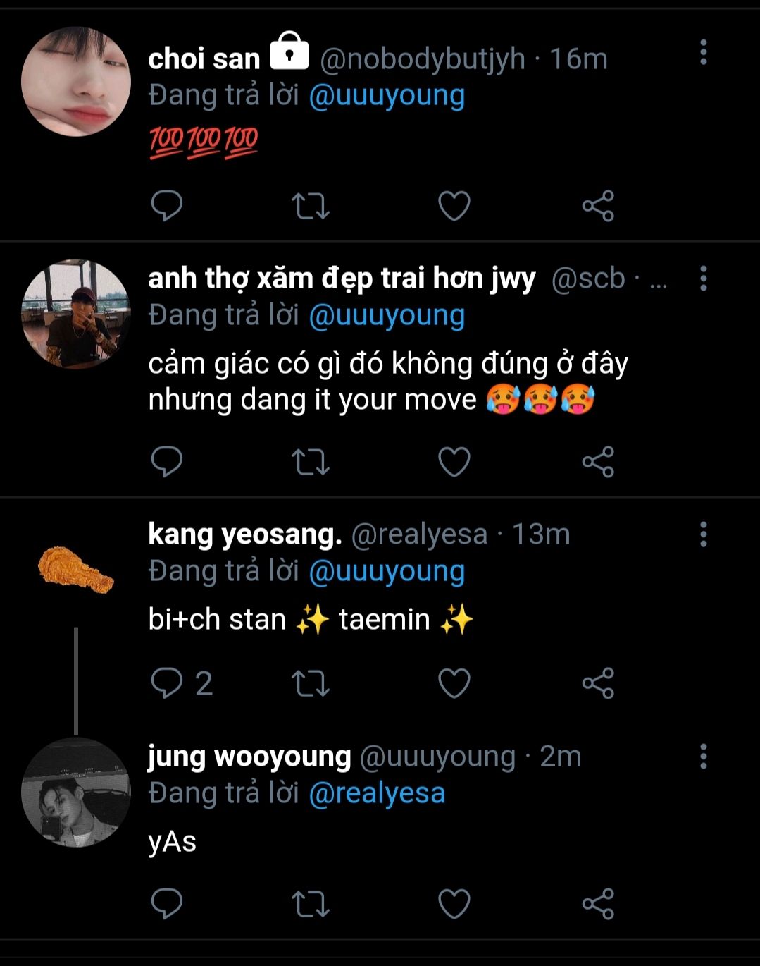 - wooyoung à sao anh lại ngồi trong bóng tối uống bia vậy?