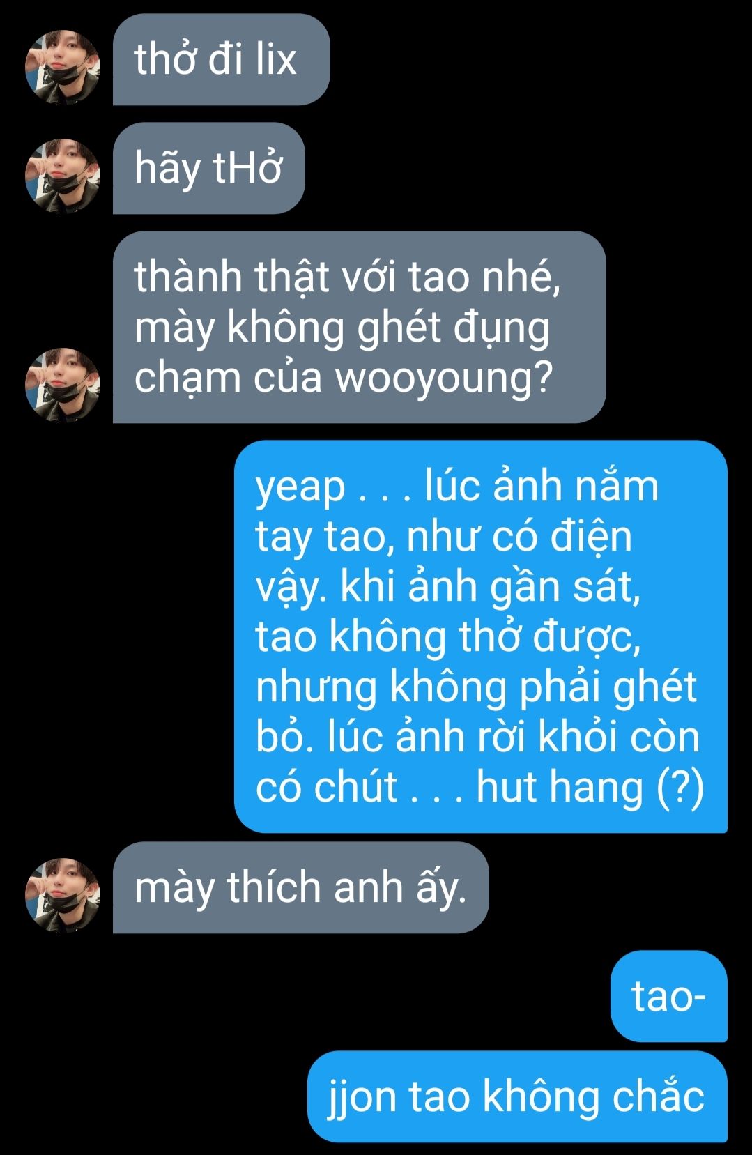 và bằng một cách kì diệu nào đó, felix thiếp đi trên sofa nhưng tỉnh dậy trên giường wooyoung.