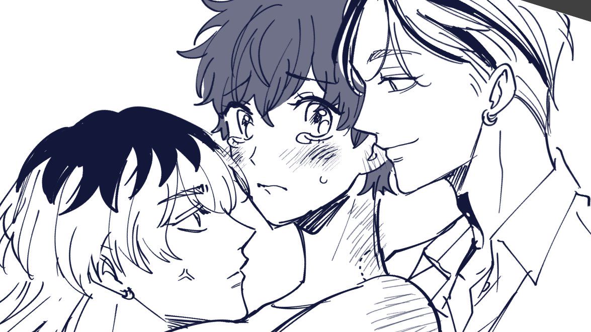 Nhìn em ấy kìa, không khác gì một cô vợ nhỏ đang làm đồ ăn cho chồng mình cả. Thế nhưng lại có đứa con chen ngang, Rindou không biết từ lúc nào đã lại gần ôm lấy Takemichi từ phía sau lưng