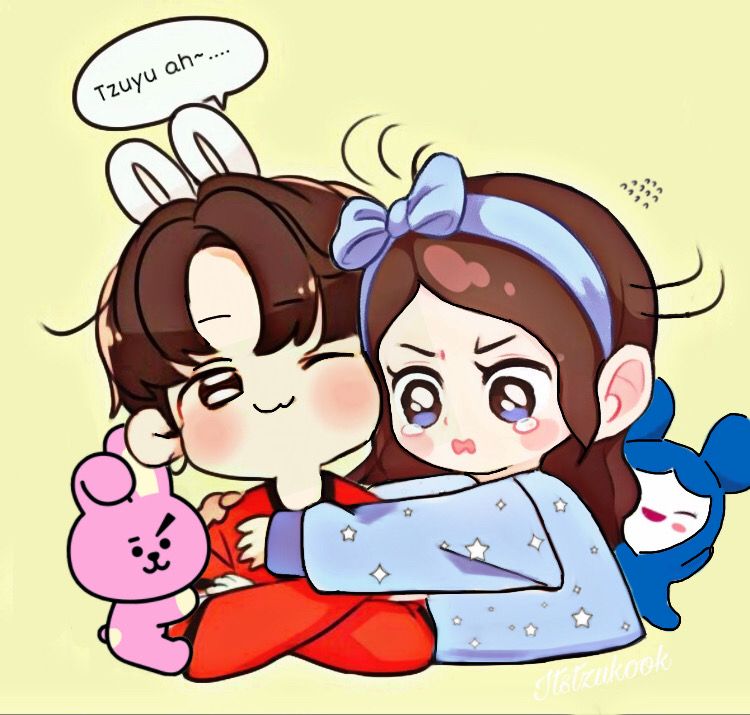 Jeon Jungkook bật cười rồi đuổi theo Chou Tzuyu, sau đó thì ôm lấy bả vai của cô rồi nhỏ giọng dỗ dành: "Anh không có thích bọn họ."