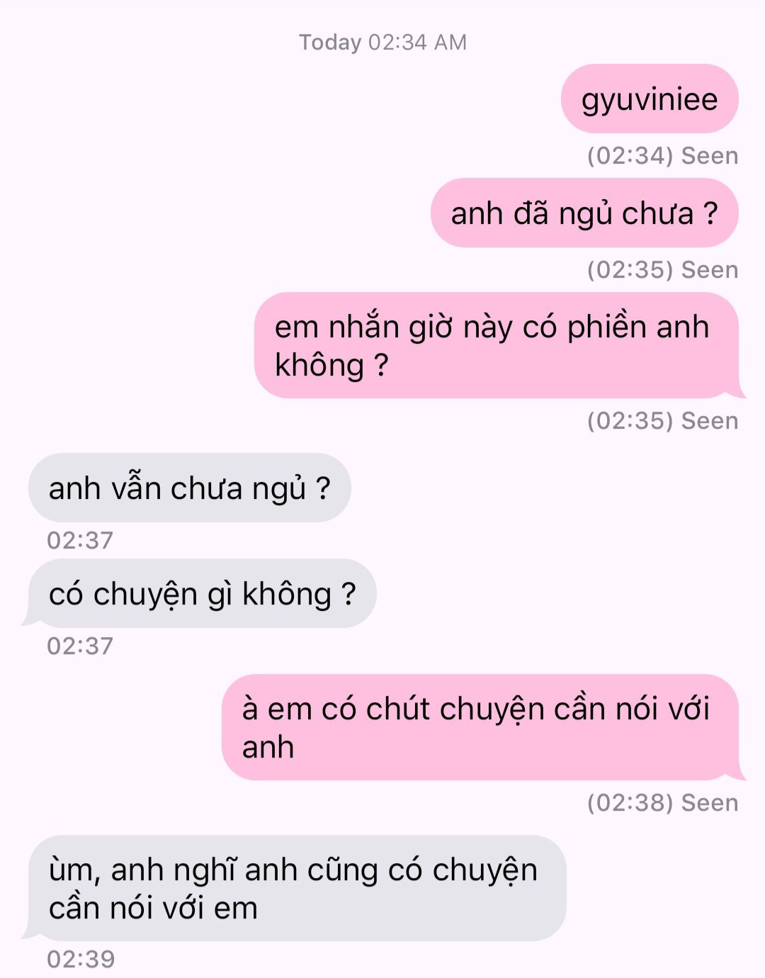 kim gyuvin não nề nhìn dòng tin nhắn mà em gửi đến rồi từ từ ngẩng đầu lên nhìn người đàn ông trung niên trước mặt.