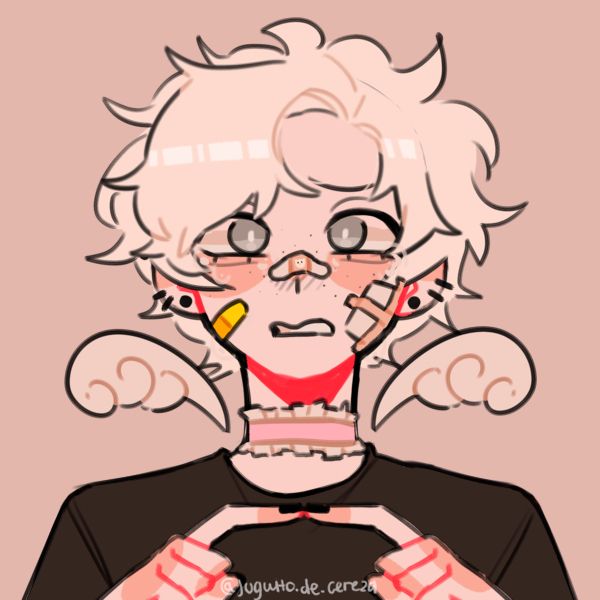 His white hair really is as soft as it looks, and his eyes are of a light grey colour. Crybaby's ears are slightly pointed, and he has got a soft pair of angel wings growing from his back.