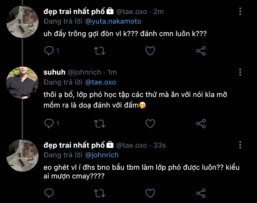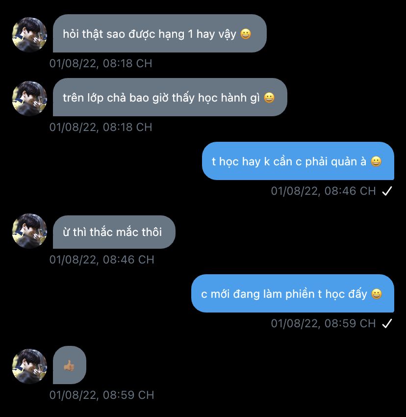 Ừ rồi sao làm lớp phó rồi đây =))) lớp phó thì hợp với lớp trưởng lắm đây này =)))