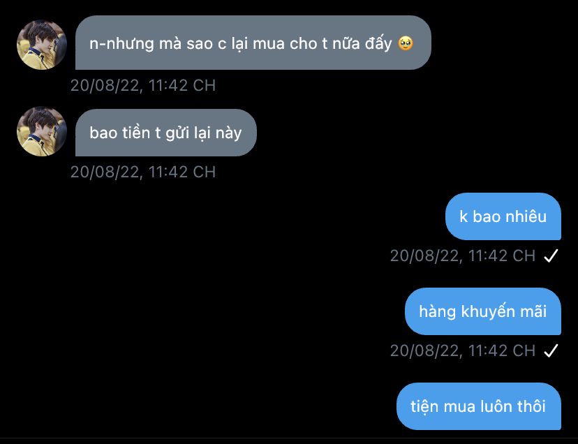 Đây 10h hơn mới từ nhà người ta về 11h hơn lại nhắn rồi này 🥹