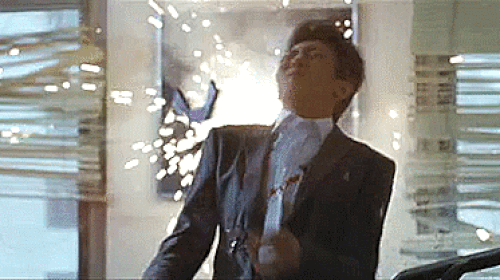 He grabbed the blonde and shoved her to the floor behind him. Y/N's reacted with a jolt but the man aimed the gun at him.