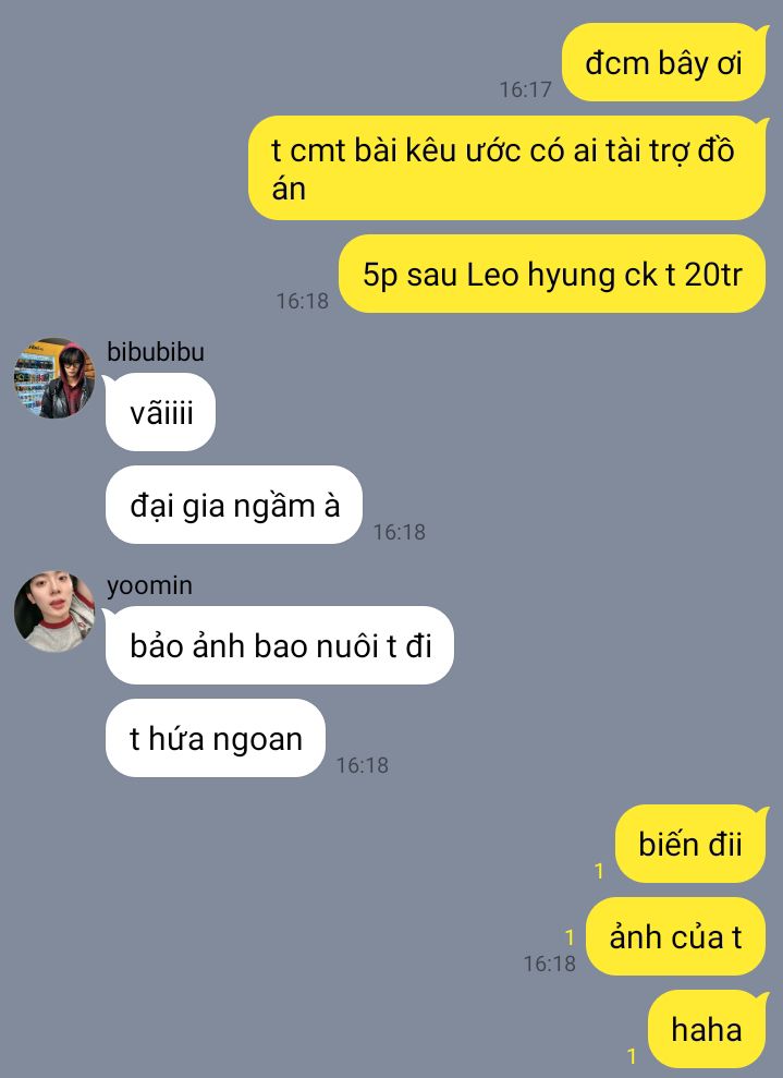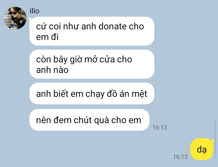 Em nhìn những dòng cmt trên điện thoại mà không khỏi bàng hoàng, chắc hyung ấy chỉ nói đùa để trêu em thôi mà đúng chứ. Gạt bỏ những suy nghĩ ngoài lề, em cầm bút rồi tiếp tục với bản đồ án đang dang dở, khá là đau ruột bởi vì hôm nay em phải nghỉ làm một hôm, cuối tuần này là hạn chót nộp đồ án, thế mà hôm nay đã là thứ 4 rồi ấy? Một là điểm tuyệt đối, hai là loại giỏi, đối với em thì từ trượt môn không có trong từ điển, chỉ có sức khỏe trượt dài mà thôi.