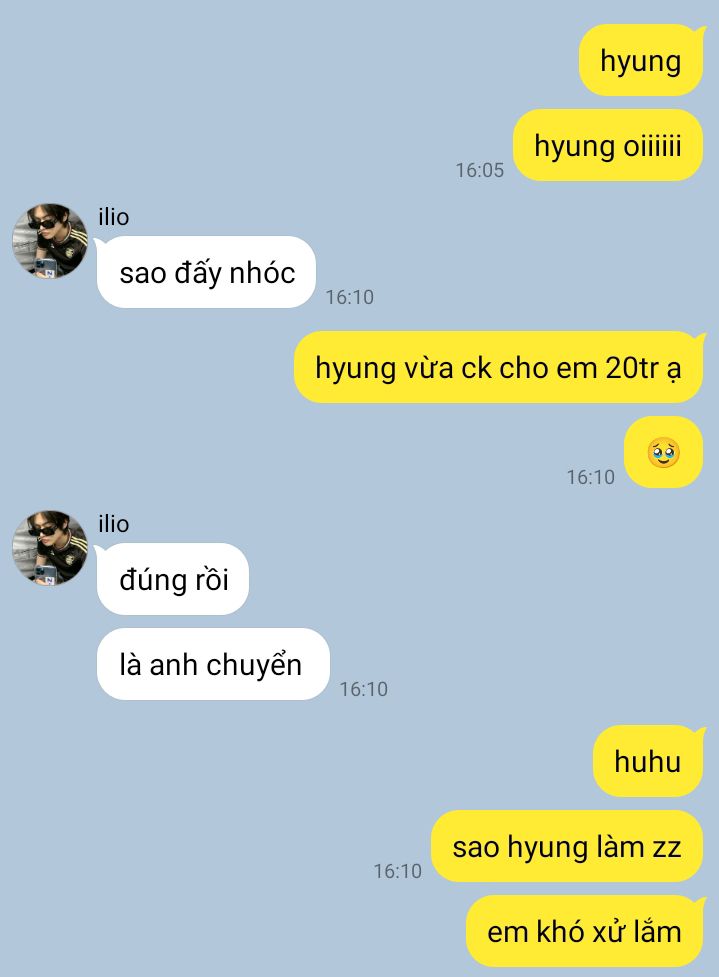 - thiếu gia vừa bảo tôi chuyển 20tr vào stk cậu và bảo tôi gọi cậu để xác nhận